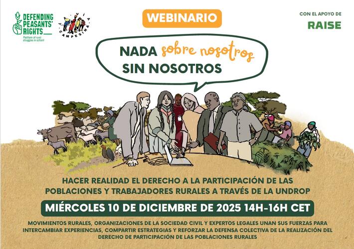 El colectivo Defending Peasants' Rights organiza el webinario “Nada sobre nosotrxs sin nosotrxs – Hacer efectivo el derecho a la participación de los pueblos y personas trabajadoras rurales mediante la UNDROP” para el día 10 de diciembre.